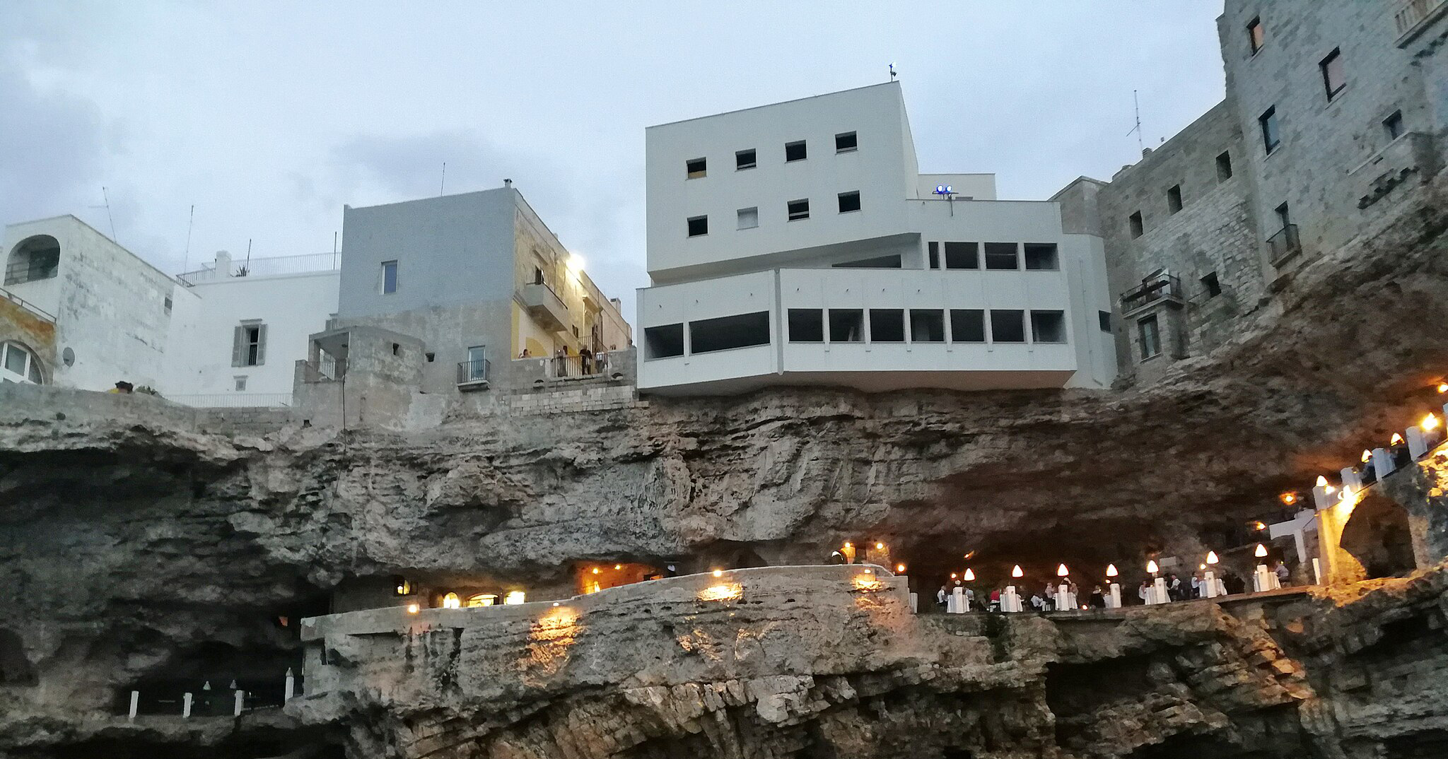 1. Nella Top Ten si trova l'Italia con la Grotta Palazzese di Polignano a Mare, in provincia di Bari, location dalle origini antichissime; uno scenario unico al mondo. Natura limpida dai riflessi azzurri, e dal verde delle insenature della grotta.