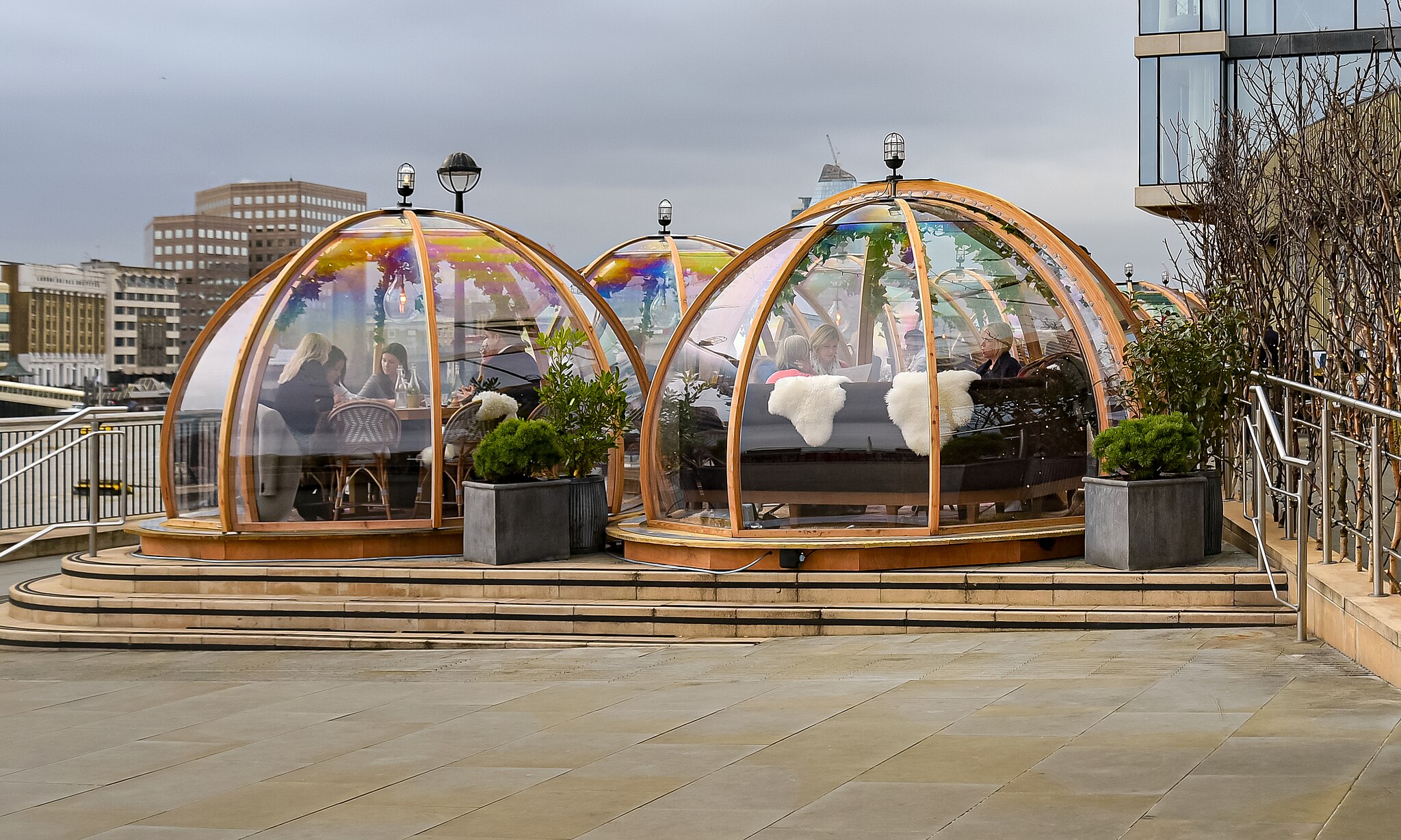 Il ristorante londinese “Coppa Club” ha deciso di tenere in maniera stabile queste “bolle riscaldate”. L'idea è nata nel 2016 e il successo fu tale che le prenotazioni andarono subito in sold out e il ristorante per gestire le numerose richieste fu costretto ad assumere 10 persone in più.
