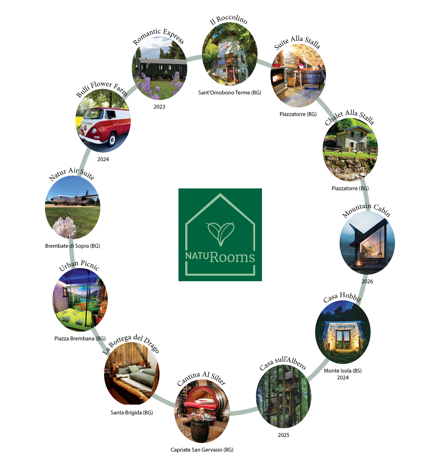 Naturooms nasce con l’intento di creare e gestire un circuito di location extralberghiere ESPERIENZIALI UNICHE ED ESCLUSIVE, dislocate in Lombardia e prossimamente sul territorio Nazionale, per concedere al “Turista moderno” la possibilità di vivere esperienze diverse in location inusuali ed originali, completamente immerse nella Natura ed ECO SOSTENIBILI.