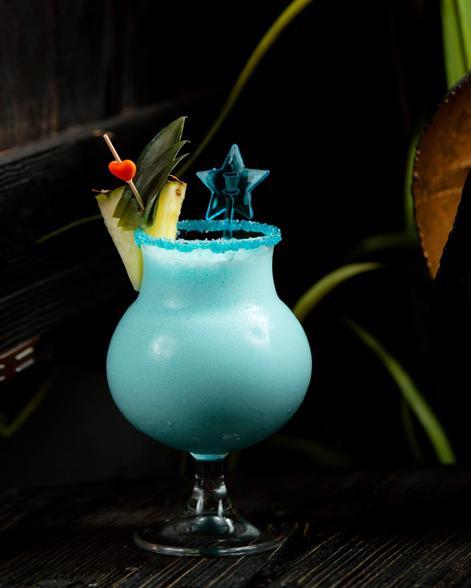 6 cl Succo di ananas- 2 cl Blu Curacao - 2 cl Crema di cocco - 4 cl Rum bianco (Cuba) - 1 cl Crema di latte